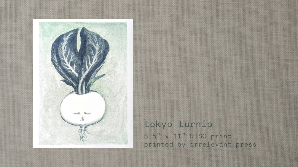 8.5" x 11" RISO print of tokyo turnip with anthropomorphized face.